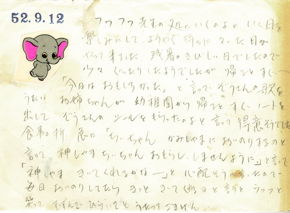 管理人のノート 昭和52年9月12日の記述(3歳:ぞう組さん)
