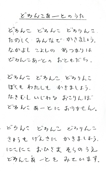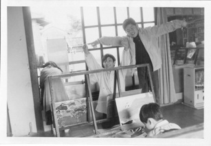 子供の表現と心理学を説いていた、宮武辰夫さんの理論に感動して、一時期は宮武先生が講演される先々に聞きに行ったり、先生の追っかけみたいなことをしていました。先生のお宅でお菓子をごちそうになったこともあるんですよ。その宮武さんのご本に「どろんこ」ということばがよく出てきます。あたらしく始める教室の名前を「どろんこあーと」にしたい。ということは宮武先生にもお話して、それはいい。といっていただいたので、この名前にしました。